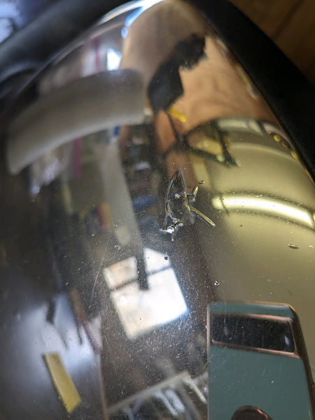 Power, without integral turn signals, and chrome cap. In fair condition.